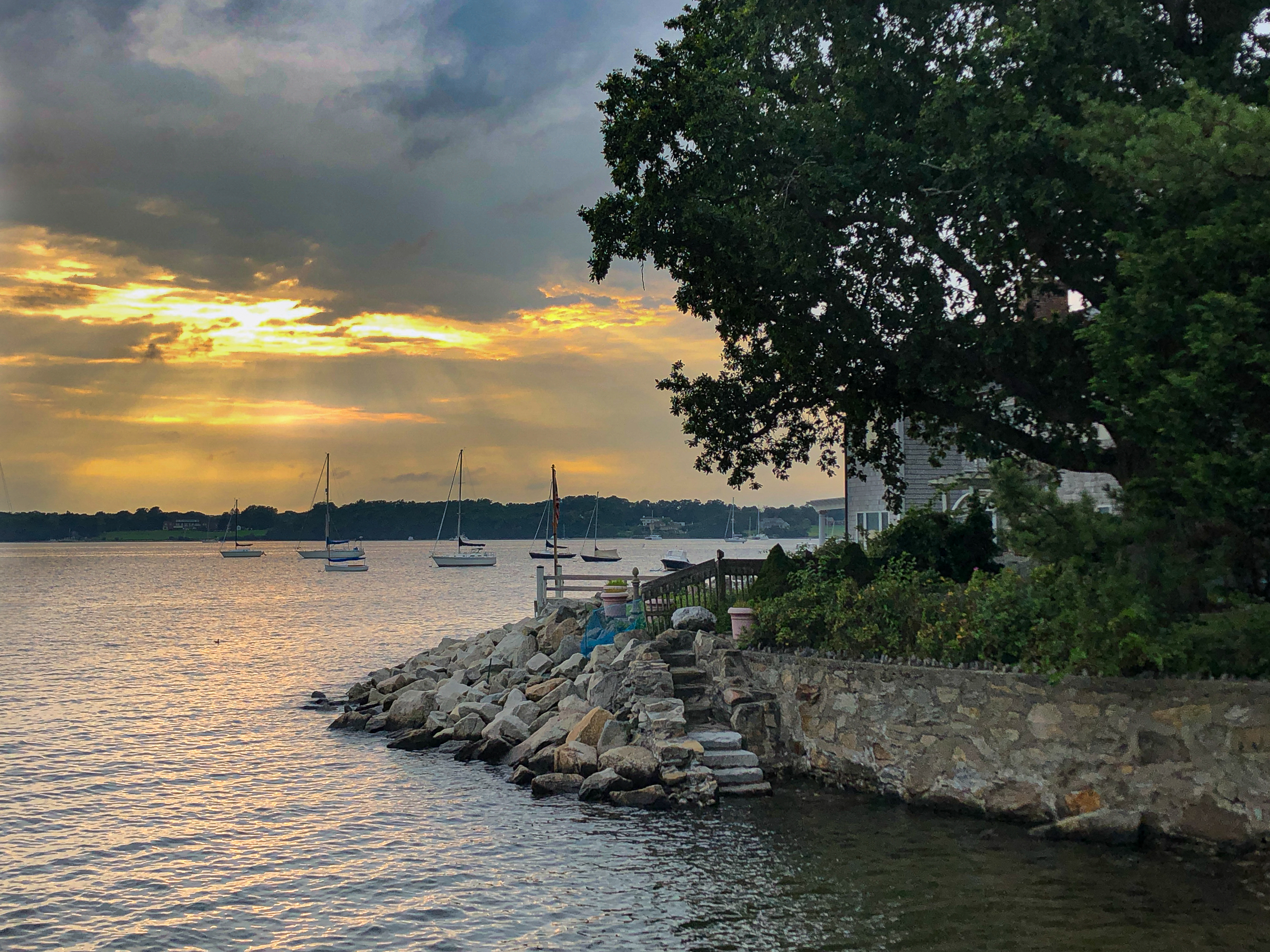 We left Cuttyhunk and needed a convenient place for Michael and Lori to catch a flight back to CA. We headed to Bristol, Rhode Island, which is on the northern end of Narraganset Bay. Bristol has many things we were looking for — a large space to anchor with good holding, mooring balls, a range of restaurants, and interesting things to do and see. Bonus: there is a Maritime Welcome Center where we can have things shipped (Amazon).